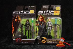 G.I. JOE, RISE OF THE COBRA FIGURINES, INCLUDING: 1 x BARONESS, ATTACK ON THE G.I. JOE PIT, SEALED; AND 1 x SHANA "SCARLETT" O'HARA, COVERT OPERATIONS, SEALED. MAKE: HASBRO.