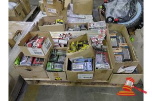 - PALLETS OF HARDWARE, FASTENERS, BOLTS, BATHROOM ACCESSORIES, LIGHTING, GAS HEATERS