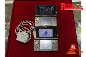 2 x NINTENDO 3DS CONSOLES, ONE IS MISSING JOYSTICK RUBBER, 1 x SCRIBBLENAUTS UNLIMITED GAME 1 x THE LEGEND OF ZELDA, OCARINA OF TIME GAME,, 1 x CHARGING CORD, UNTESTED