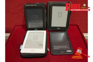BUNDLE OF 4 x KOBO E READERS 3 x MODEL# N613, WITH COVERS, 1 x MODEL#N506, NO CHARGERS, UNTESTED