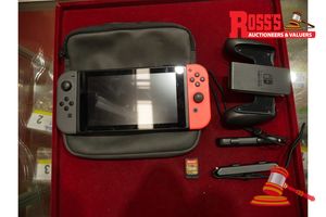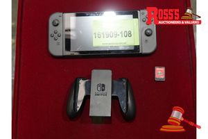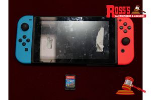 NINTENDO SWITCH, MODEL# HAC-001 (-01), WITH HANDLE AND GRIP ATTACHMENT, CASE, WITH MICRO SD 128GB CARD, MARIO CART DELUXE GAME, NO CHARGER, UNTESTED (SOME MARKS)