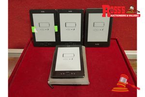 4 x KINDLE E READERS, MODEL# PQ94WIF, NO CHARGERS, UNTESTED