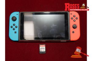 NINTENDO SWITCH, MODEL# HAC-001 (-01), SUPER MARIO ODYSSEY GAME, MISSING JOYSTICK RUBBER, JOYCON HANDGRIP, NO CHARGER, UNTESTED, SOME MARKS