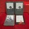 4 x KINDLE E READERS, WITH 3 COVERS, MODEL# D01200, NO CHARGERS, UNTESTED