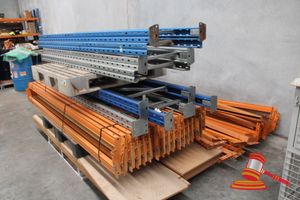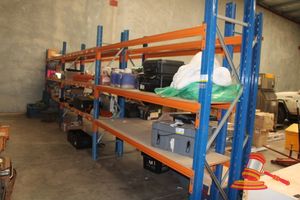 7 x BAYS OF SHELVING UNITS, 8 x UPRIGHT BEAMS H2400 x W600mm 2 x H2200mm x W600mm, 6 x WOODEN SHELVES L2700mm x W600mm, 12 x WOODEN SHELVES L2600mm x W600mm, 12 x BEAMS L2700mm, 30 x BEAMS L2600mm (PURCHASER TO DISASSEMBLE PROVIDING OWN TOOLS AND HELP)