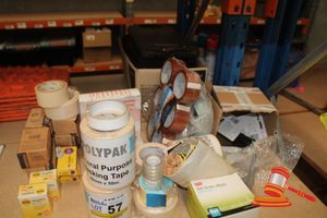 BUNDLE INCLUDING OFFICE FURNITURE INCLUDING 1 x DESK W900mm x L1800mm x H720mm, 1 x DESK W900 x L1800mm x H730mm, 1 x SHELVING UNIT INCLUDING 4 x SHELVES W310mm x L890 x H1800mm, TPLINK WIFI MODEM, GBC QUICK START H420 LAMINATOR, A3 PAPER, PRINTER INK CARTRIDGES, LARGE PAPER GUILLOTINE, 1 x OFFICE CHAIR