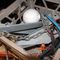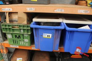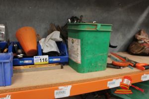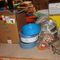 STORAGE BOX CONTAINING VARIOUS BEARING, FILTERS, BATTERY CHARGER, CUT AND POLISH CREAM ETC.