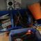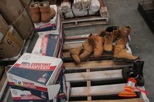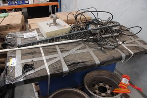 ASSORTED JUMPER CABLES, BATTERY CHARGERS, WHEEL CHOCKS AND TOOLS