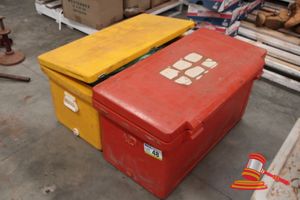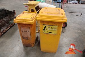 2 x STORAGE BOXES 450 x 550 x 1100mm INCLUDING RAGS AND CONTENTS