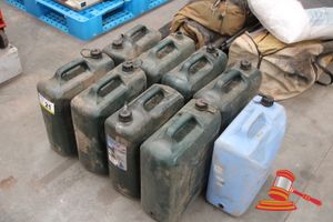 4 x 20L JERRY CANS, 1 x 8.5KG GAS BOTTLE