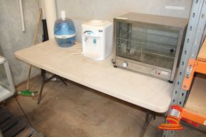 BUNDLE CONTAINING COLLAPSABLE TABLE, WOODSON PIE WARMER, AQUA TOGO WATER DISPENSER, 2 x CORK BOARDS