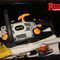 BOX CONTAINING POWER TOOLS INCLUDING MAKITA SAW, HITACHI PORTABLE GRINDER AND SANDER, MAKITA POWER DRILL, XCEED SAW