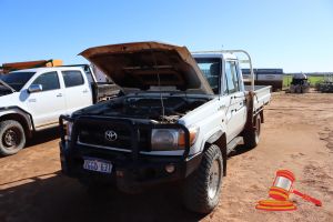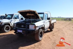 4X4 TRAY TOP, 5 SPD MANUAL, P/S, A/C, BULL BAR, VIN:JTELV71J307005646, REGO: MD 9139 LIC: 1.2.25, ODO: 419,580 KMS SHOWING ON CLOCK