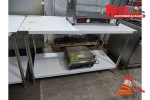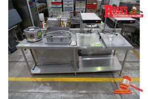 STAINLESS STEEL BENCH WITH UNDERBENCH, APPROX 2400 L x 700 W x 900mm H, 1 x BENCH TOP APPROX 1200 L x 630mm W