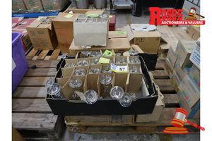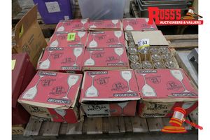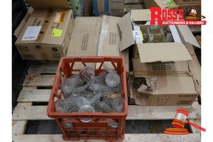 PALLET OF PLASTIC GLASS/CUP CRATES, WITH ASSORTED WINE, CHAMPAGNE, BEER, WATER GLASSES
