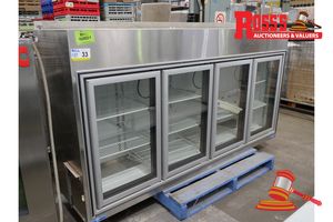 COMMERCIAL 4 DOOR FRIDGE, #CRCF07, 10 AMP PLUG, MOTOR ON TOP, APPROX 1500 H x 800 W x 1450mm L, UNTESTED