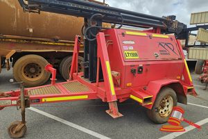 RED, SINGLE AXLE, DIESEL (REG# UNLIC) ODO# 22,111 HRS SHOWING, VIN# 6U9VSS00000133816, STARTS & RUNS, 6 HEAD LED LIGHTING TOWER, LT1450