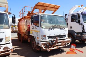 - 2014 FUSO FN600 WATERCART TRUCK, WHITE, 6X4, AUTO, P/S, A/C, DIESEL, REG# UNLIC, ODO# 143,114KM SHOWING, PTO# 2096HRS SHOWING