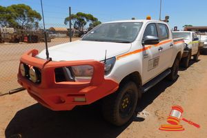 9/2021 TOYOTA HILUX D4D DUAL CAB, WHITE, 4x4, MANUAL, P/S, A/C, DIESEL, ROOBAR, SPOTLIGHTS, ISOLATOR, FIRE SUPPRESSION, FIRE EXTINGUISHER, WORKLIGHTS, BEACON, REV ALARM, REG NO - (UNLIC) ODO - 136,323KMS SHOWING, ENGINE# 1GDA511014, VIN# MR0KA3CD601263529 (DR#6211) (*NOTE - ROOF LINING STAINED, REAR BUMPER & TRAY DAMAGED, MOUNTING BOLT MISSING ON REAR SEAT, DENTS ON ROOF DRIVERS SIDE & R.H./REAR DOOR*)