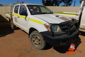02/2008 TOYOTA HILUX DUAL CAB, WHITE, MANUAL, P/S, A/C, DIESEL (REG# UNLICENSED) ODO# 417,935 KMS SHOWING ON CLOCK, VIN# MR0FZ226401159881, ROOBAR, TOWBAR, FIRE EXTINGUISHER, BEACON, REVERSE ALARM, LV273 (DR#6227)