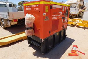 FG WILSON 22KVA PERKINS DIESEL, POWERED GENERATOR IN CABINET, ODO - 8,870HRS SHOWING, SINGLE & 3 PHASE OUTLETS, BREAKERS, ESTOP, ISOLATOR, FIRE EXTINGUISHER, TYNE POCKETS (ASSET#1182012)