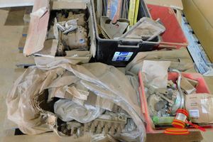 STEEL BOX CONTAINING PIPE THREADING TOOLS AND PIPE BENDING DIES