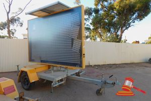 2011 BARTCO VMS400 PLANT TRAILER, YELLOW, SINGLE AXLE (REG# UNLIC) VIN# 6T9T27V97B0FKE101, LED MESSAGE BOARD, DISC BRAKES, 4 X STABILISER LEGS, 2 X SOLAR PANELS, CONDITION UNKNOWN, 147710, CONTRACT: 26461044 (DR#6165)JOCKEY WHEEL WITH WHEEL MISSING, SOME SCRATCHES & SMALL DENTS ON PANELS, NO ISOLATOR