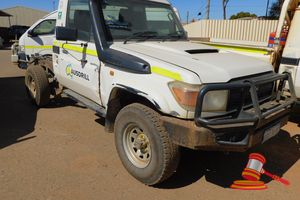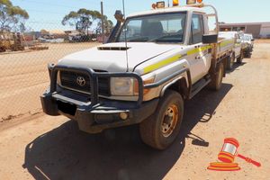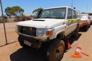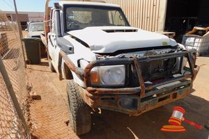 11/2015 TOYOTA LANDCRUISER DUAL CAB, WHITE, 4x4, MANUAL, P/S, A/C, DIESEL, TOW BAR, SNORKEL, ISOLATOR, FIRE SUPPRESSION, BEACON, WORK LIGHTS, REV ALARM, ROPS TRAY, FIRE EXTINGUISHER, REG NO - KBC277S, EXPIRY - 15/08/2025, ODO - UNKNOWN, VIN#JTEBV71J007005180, (DR#6223) (*NOTE - NO IGNITION KEYS, DEEP CHASSIS RUST, RUST PITTING IN DOOR, NO FRONT BUMPER, IGNITION SWITCH REMOVED, SOME INTERNALS REMOVED INCLUDING DASH, DOOR LOCKS etc, PASSENGER SEAT NOT MOUNTED*)