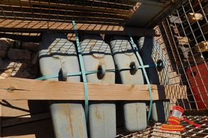 STEEL CAGES CONTAINING LIEBHERR UNUSED EDGE PROTECTORS WS70, 11110180, 27 IN TOTAL