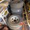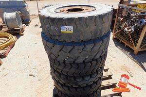 8.25 R15 TYRES MOUNTED ON 6 STUD RIMS 4 x SOLIDS & 2 x TUBED
