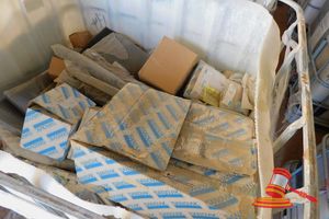 APPROX 20 MANUFACTURED HEEL BLOCKS IN STEEL CAGE