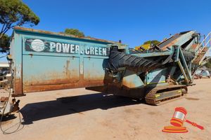 TRACK MOUNTED MOBILE POWER SCREEN, CHIEFTAIN 1400, MACHINER SERIAL NO# 66 15 202, ODO - 14,841 HRS SHOWING, RADIO CONTROLLED DRIVE UNIT, OUTPUT UP TO 400 TPH, HIGH CAPACITY VARIABLE SPEED BELT FEEDER 2 DECK SCREEN BOX, HYDRAULIC SCREEN ANGLE ADJUSTMENT, HYDRAULIC SCREEN, TENSIONING, SCREEN WALKWAY AND ACCESS LADDER, HYDRAULIC FOLDING CONVEYORS