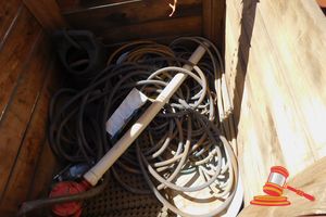 ALTERNATOR & STARTER MOTOR REMOVED, HYDRAULIC POWER PAC REMOVED, JOCKEY WHEEL HANDLE BROKEN, E-STOP & ELECTRIC CONTROL DISASSEMBLED