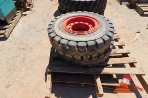 8.22-15 GALAXY SOLID TYRES ON 12 STUD RIMS (NEAR NEW)
