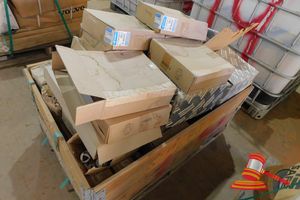 WOODEN CRATES CONTAINING PLATIC PARTS TRAYS, AIR LINES, DRUM PUMP & RUBBERT MATTING & 1 x PALLET CONTAINING VARIOUS POLY PLASSON FITTINGS, STRAIGHT, ELBOWS & T-PIECES ROLLS OF BASTION BARRIER MESH