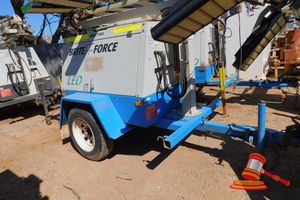 2014 BRITEFORCE LIGHTING TOWER, BLUE/WHITE, SINGLE AXLE (REG# UNLIC) ODO# 22,567 HRS LAST RECORDED, VIN# 6T9T26WA1D09AZ222, DRUM BRAKES, 3 CYL DIESEL YANMAR, 4 X MECHANICAL STABILISER LEGS, ISOLATOR, ORIGINAL 6 HEAD LED, FL# 219142, CONTRACT: 26461099 (DR# 6166)