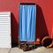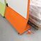 GLASS WHITEBOARD, ORANGE, ON CASTORS - GENERAL WEAR & TEAR - APPX W1220mm x H1800mm x D480mm