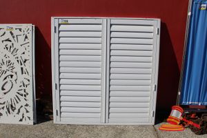 ALUMINIUM WINDOW SHUTTERS - APPX W1450mm x H1500mm - MINOR DAMAGE, INSPECTION RECOMMENDED