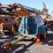 MAST EXTENDED - CANNOT BE BROUGHT IN, FAULT TO CONTROL PANEL AND OPERATING CONTROLS, 1 x HYDRAULIC LINE NOT CONNECTED, 1 x STABILISER LEG EXTENDED AND BENT