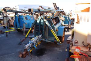 INCOMPLETE MAST - SECTION OF MAST SITTING LOOSE ON TRAILER - WIRING CUT TO MAST - BOTH CONTROL PANELS - ITEMS REMOVED OR WIRING CUT