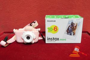 1 X MY FIRST CAMERA (PINK). TURNS ON (UNTESTED) AND 3 X BOXES OF FUJI FILM INSTANT MINI FILM (UNUSED)
