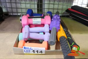 ASSORTED HAND WEIGHTS AND ROLLERS