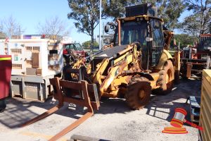 OUT OF SERVICE TAG STATES - HYDRAULIC FILTER ELEMENT REMOVED, FAIR CONDITION TO TYRES, PANEL & PAINT, BLUE IN COLOUR, WP 1014