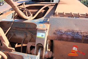 TRIAXLE, SPRING SUSPENSION, DRUM BRAKES, 10 STUD WHEELS, SCRAPER BLADE FITTED, RUST & CRACKS EVIDENT, DOOR OPEN - POSSIBLE DAMAGE, TYRES - FAIR, R5082 VIN # NOT SIGHTED