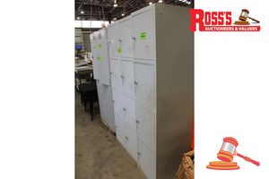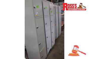 4 x 4 COMPARTMENT LOCKERS L385 x W455 X H1830 (USED CONDITION/RUST), 3 x 2 COMPARTMENT LOCKERS L385 x W455 x H1830 (MISSING KEY) (USED CONDITION/RUST)
