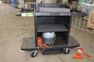 RUBBERMAID UTILITY CART 6189, GENERAL WEAR AND TEAR, WITH NILFISK VP300 VACUUM, (NO HOSE AND TUBE)