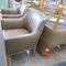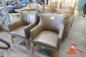 10 x LEATHER LOOK TUB CHAIRS (LIGHT BROWN). MINOR WEAR AND TEAR