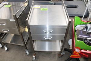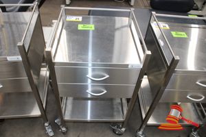 STAINLESS STEEL MEDICAL TROLLEY WITH TWO DRAWERS