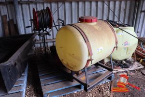 HARDI SPRAY UNIT MOUNTED ON WOODEN PALLET, APPROX 200ltrs, 12V PUMP WITH SPRAY BAR AND LANCE,