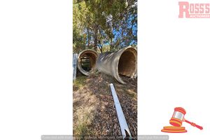 QTY OF C/O 3 x CONCRETE CULVERTS EX HARVEY, 2.6ML x 1.75 ID DAM, 2 CONCRETE CULVERTS 2.4ML x 1.540 ID, 9 x ASSORTED CONCRETE CULVERTS, VARIOUS LENGTHS, 300-600mm ID, 4 x RECYCLED PLASTIC CULVERTS, VARIOUS LENGTH, 200-300mm ID, 1 x BLUE LINE POLY PIPE, APPROX 6M LONG, 150 ID-BUYER TO ARRANGE LOADING,